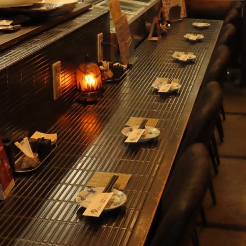 店内入ってすぐのカウンター席は調理も見える特等席となっております♪お一人様のご利用もOK!デートでも人気のカウンター席でごゆっくりお過ごしくださいませ。また、ゆ家石垣別邸ならではの串焼きもオススメとなっておりますので、ぜひ一度ご賞味あれ!